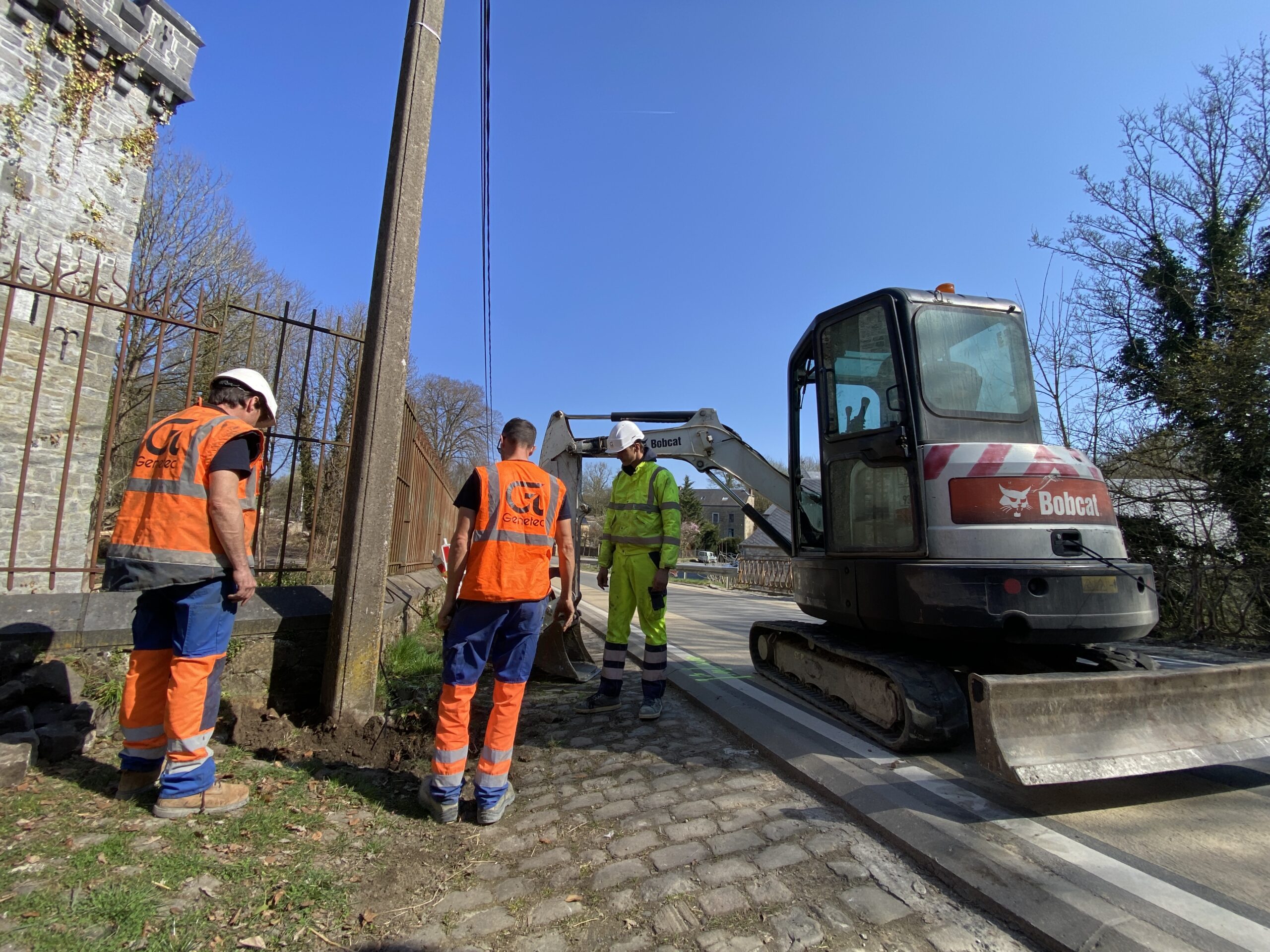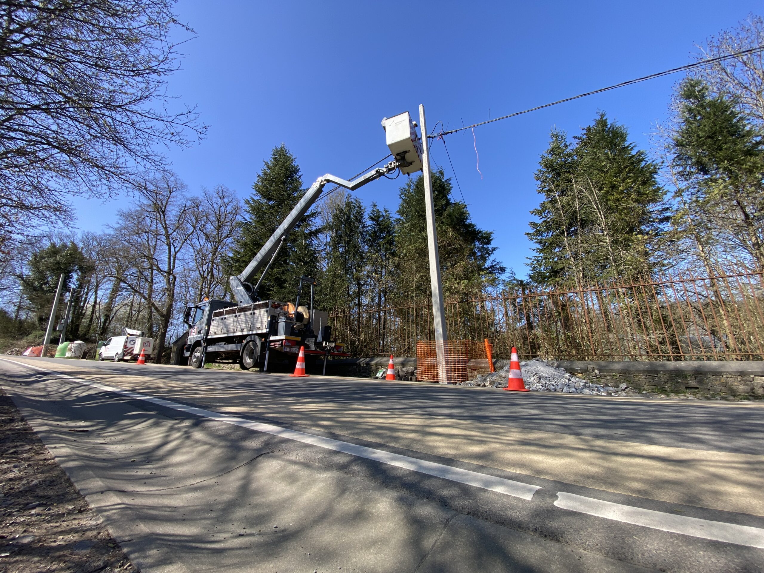 L'intervention est essentielle pour assurer le futur du réseau. "Dans le cadre de notre contrat basse tension avec ORES, nous remplaçons les poteaux pour déployer la fibre optique. Ils sont trop vieux, pas assez forts et pas assez hauts pour garder la hauteur obligatoire de 7m sous les câbles", précise notre conducteur du chantier. "J'en profite pour remercier l'équipe pour leur courage et la bonne concertation", ajoute-t-il.